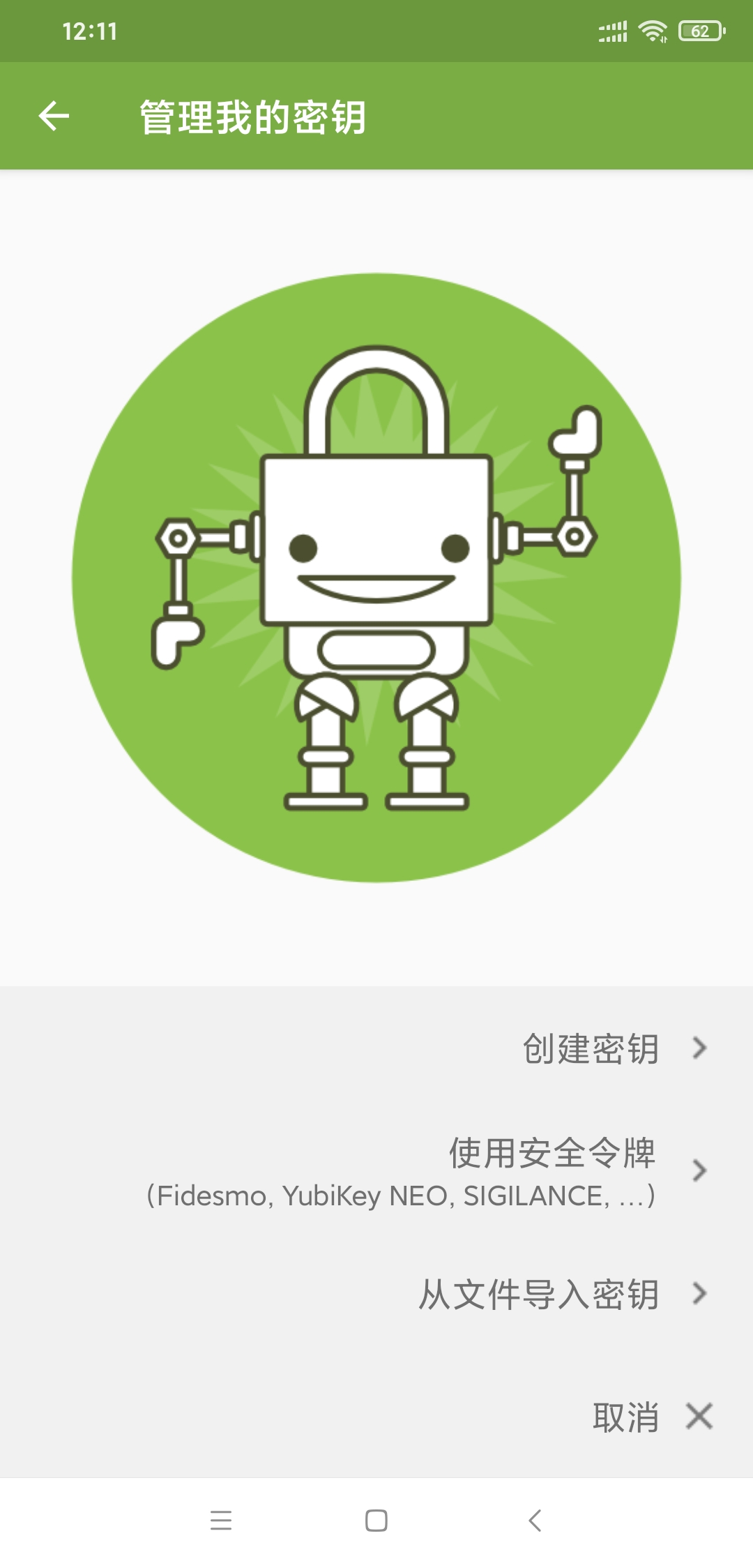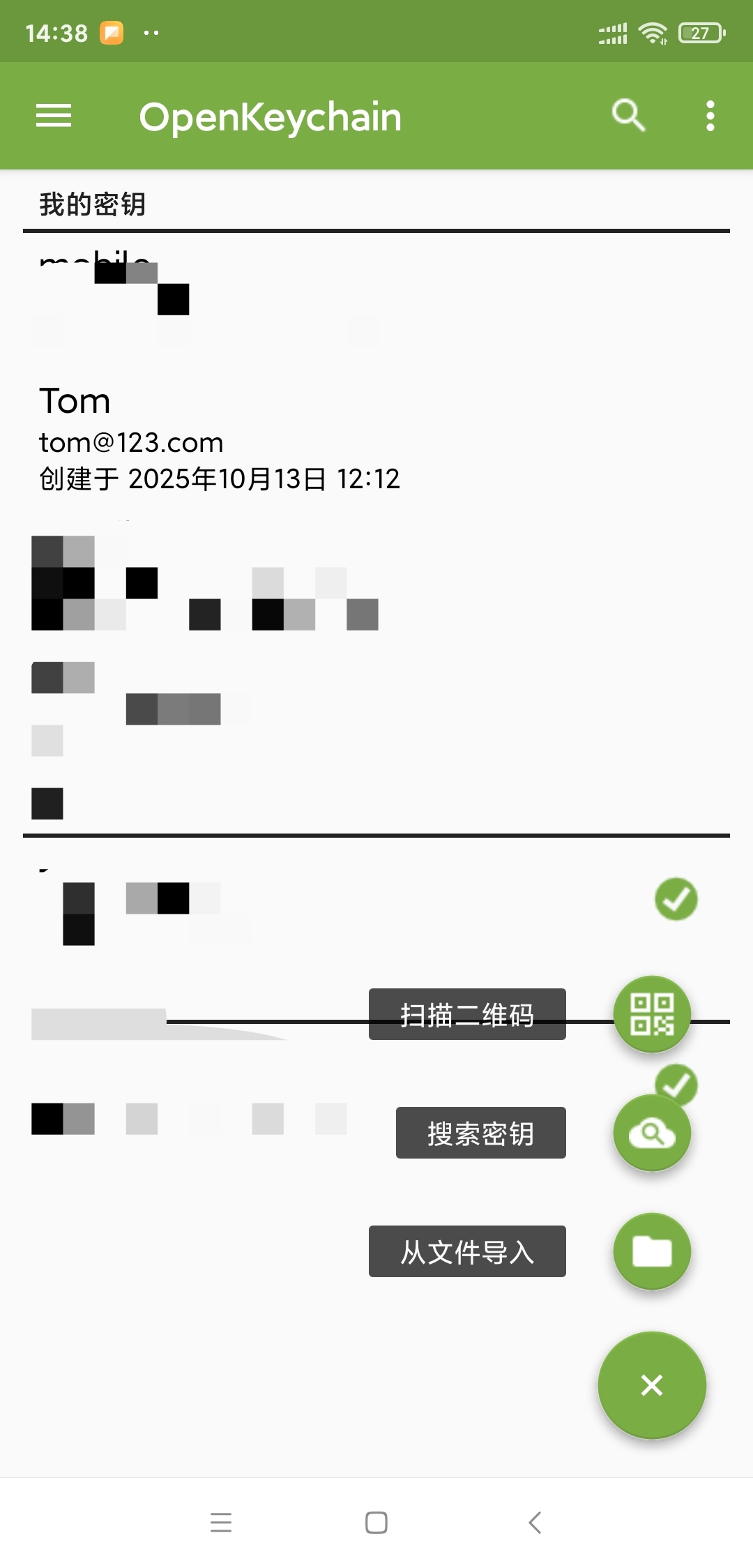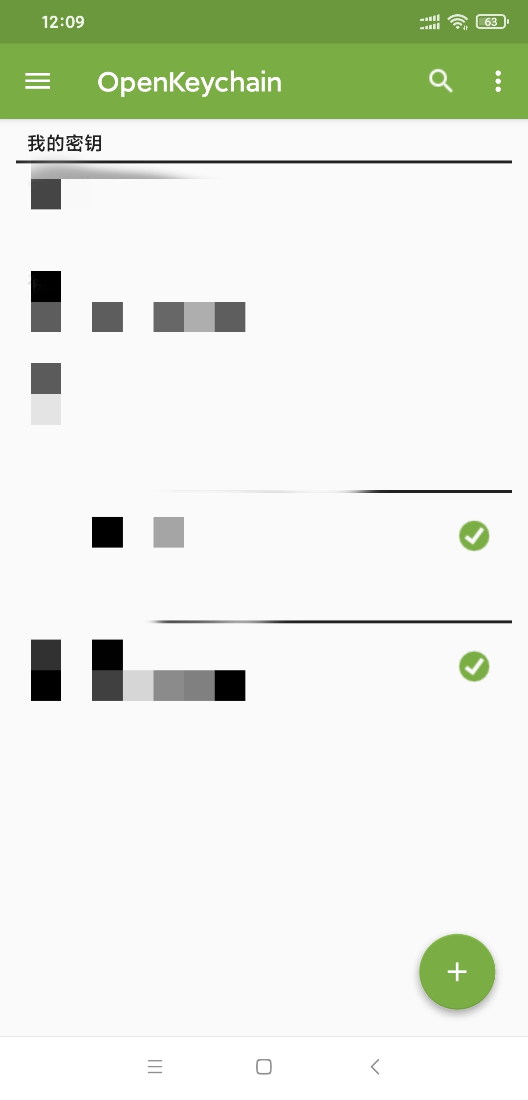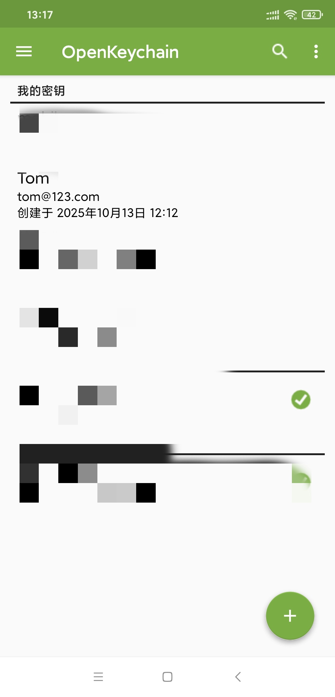 或者保存到文件,然后在OpenKeyChain中导入,点击右下角的加号