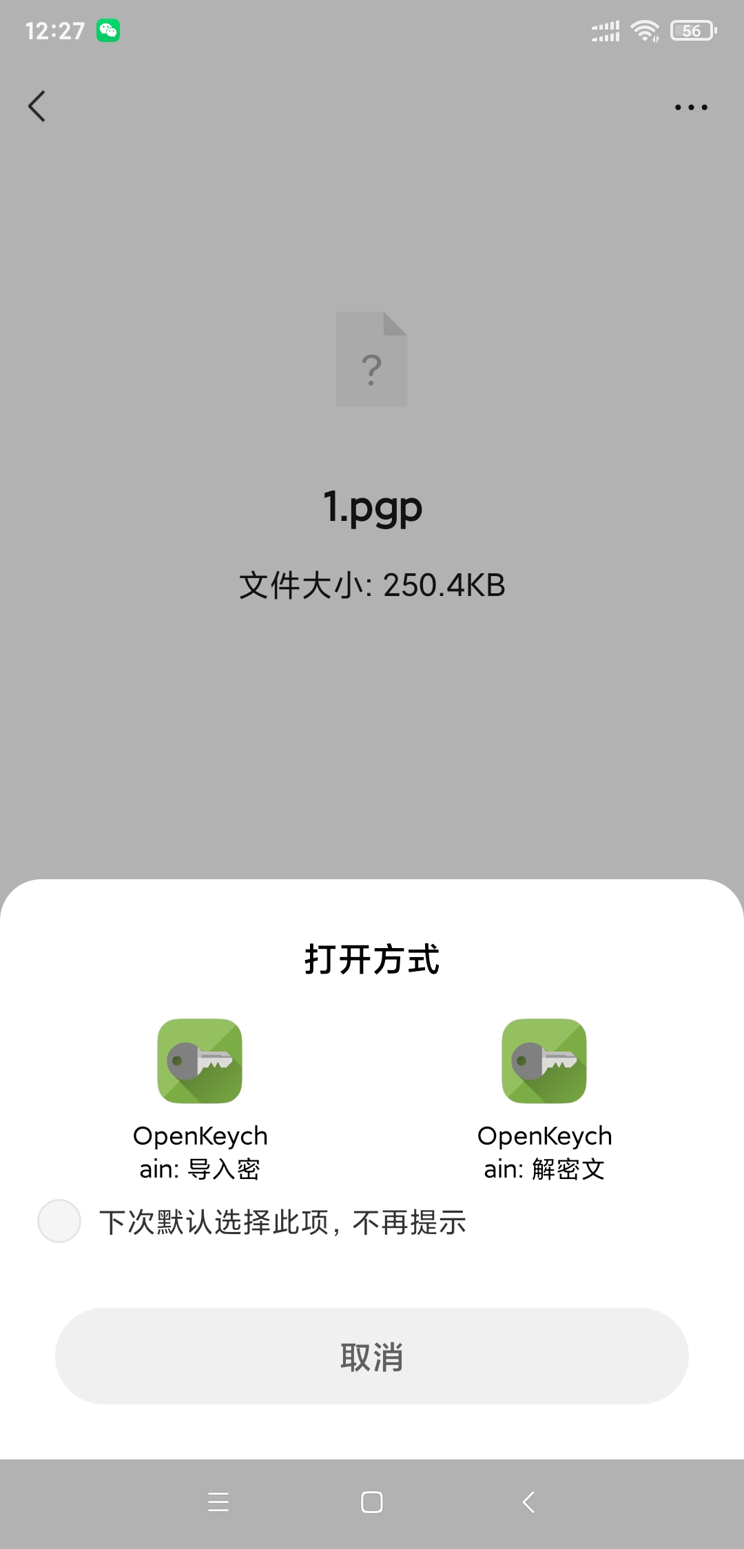 好友收到文件后,点击,在打开方式页面,选择OpenKeyChain