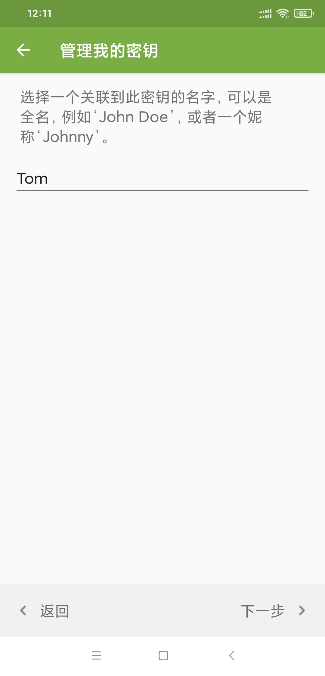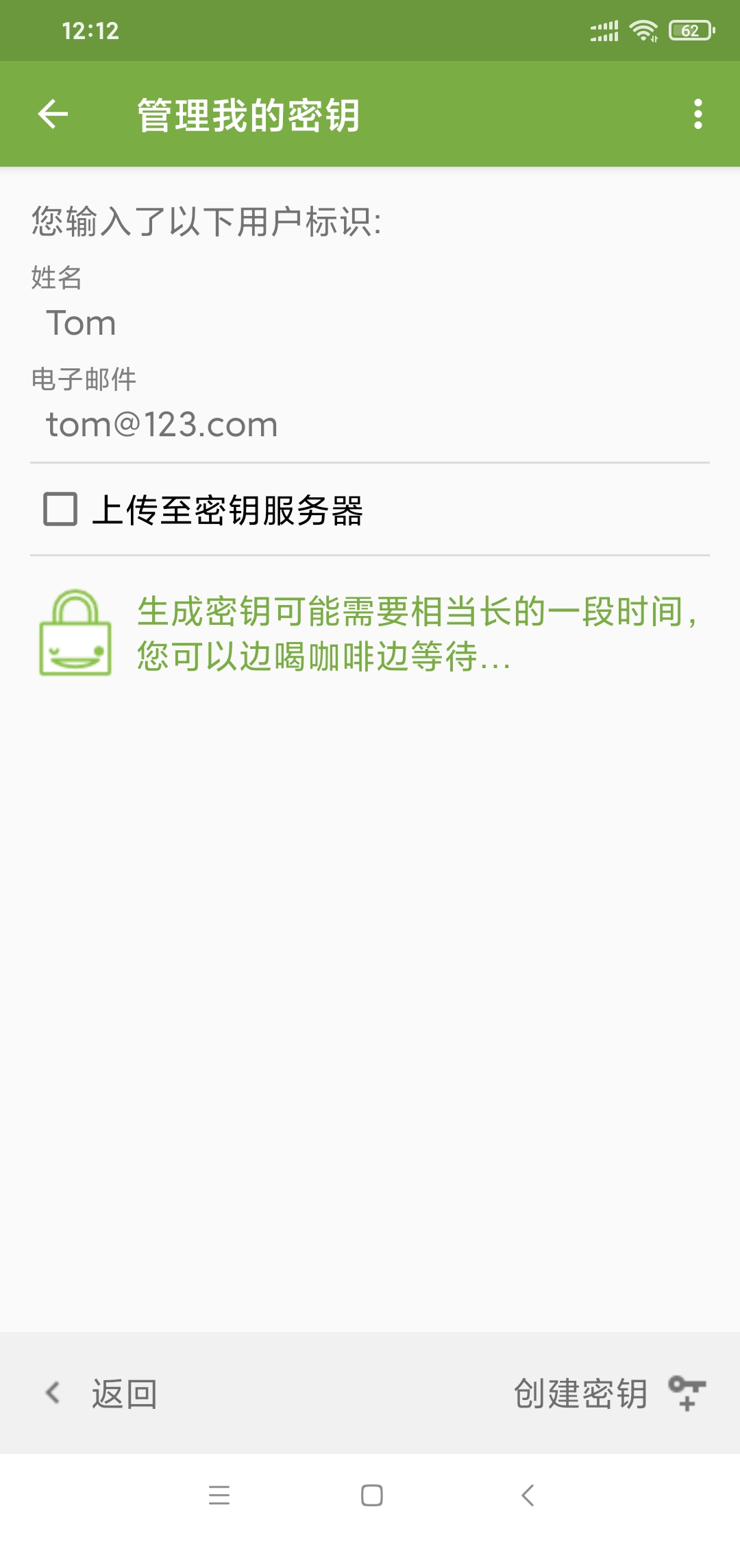 点击创建密钥,输入姓名,这个可以随便填写,只是为了方便识别身份